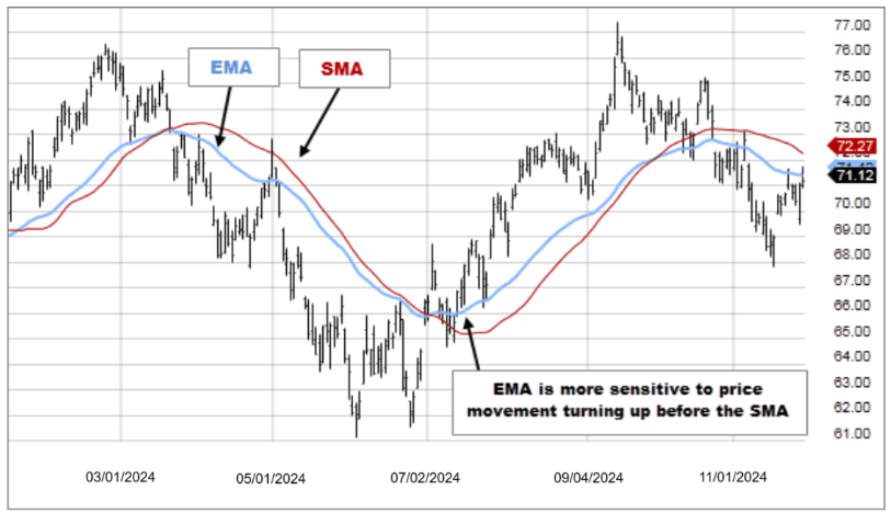 What is the difference between EMA and SMA?